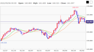 ポンド円については、現161.0xから160.0を割り込んでくるラインがあります。